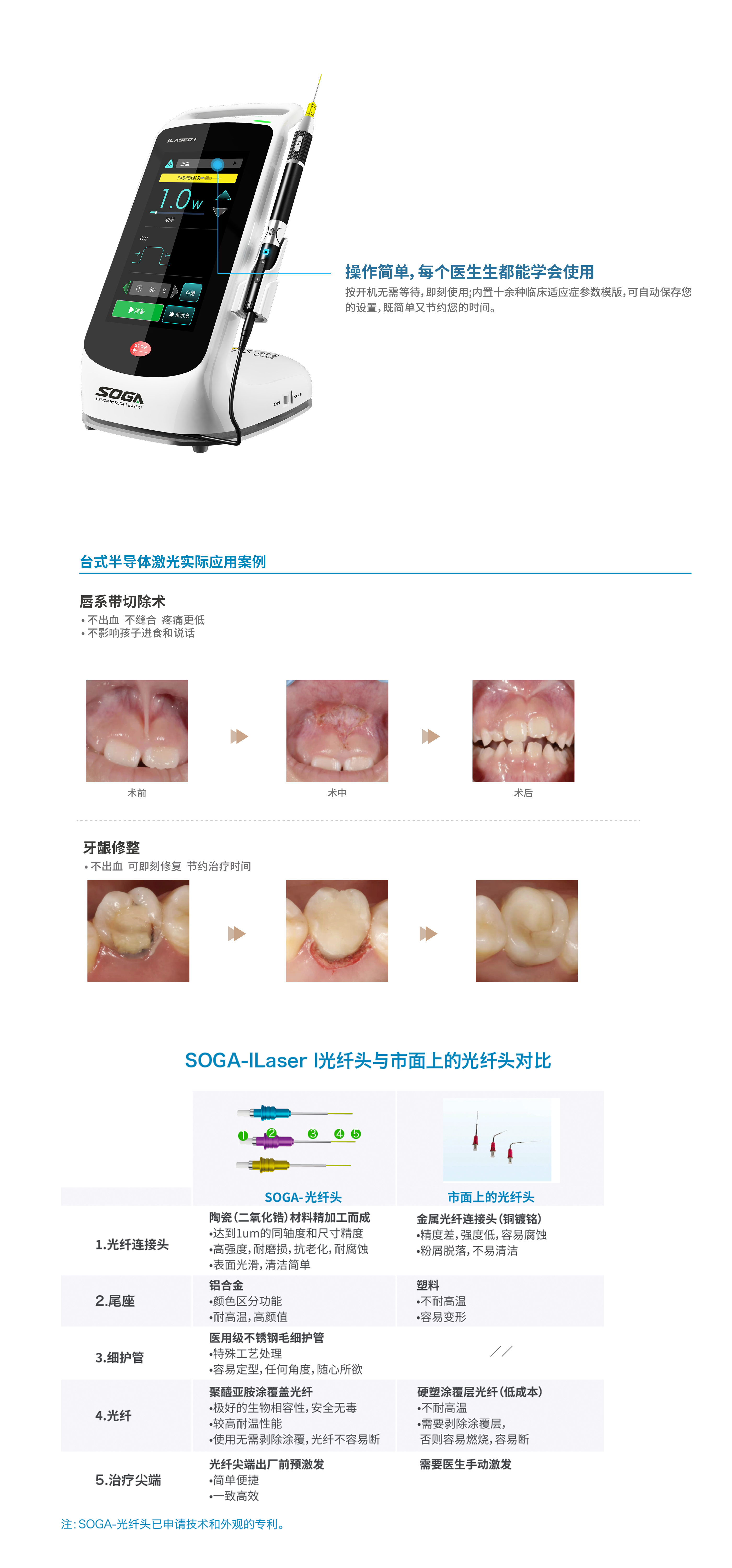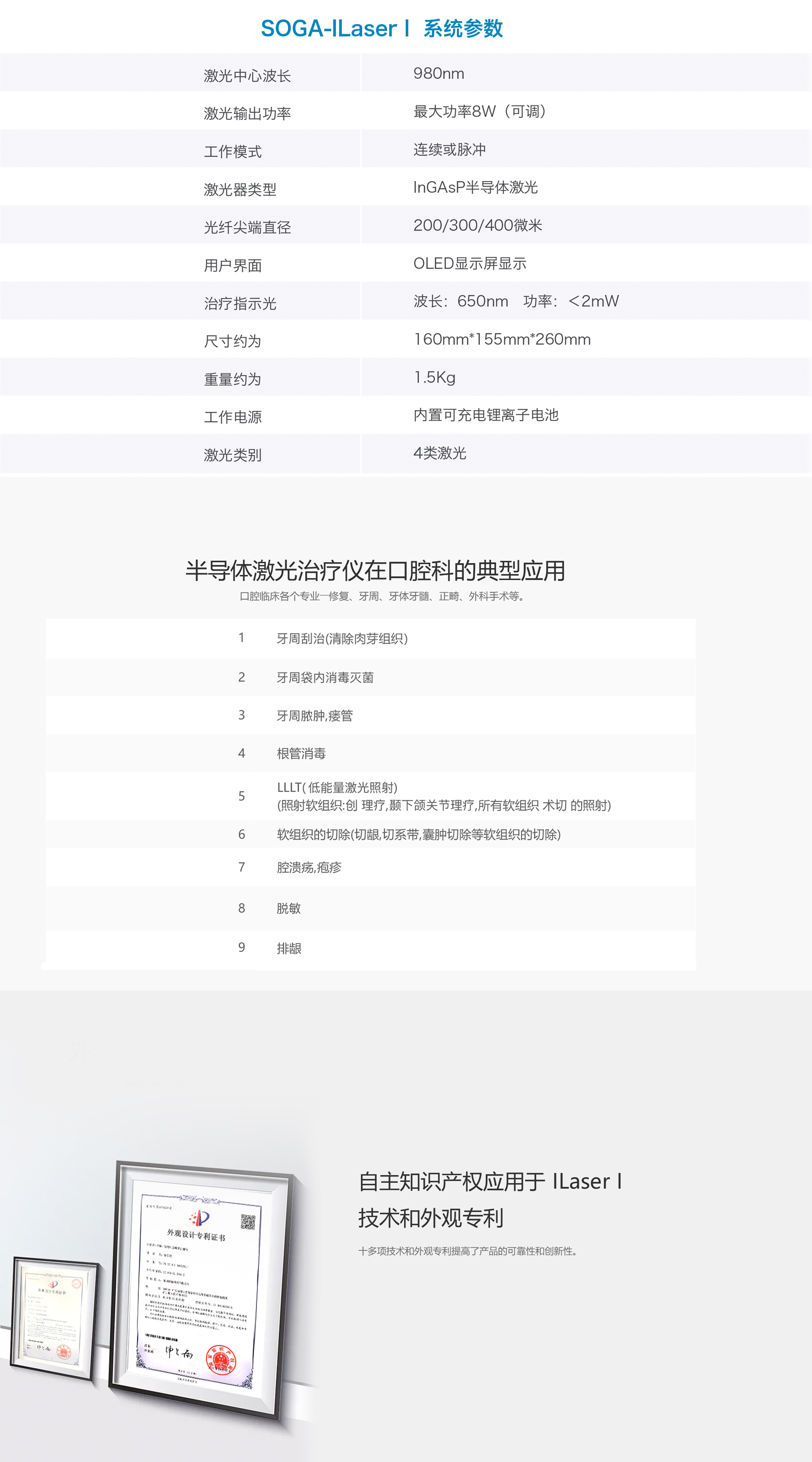 开机无需等待,即刻使用;内置十余种预设程序临床适应症参数模版。